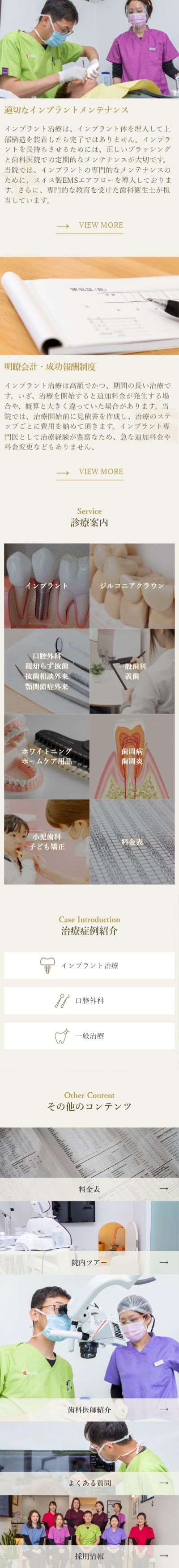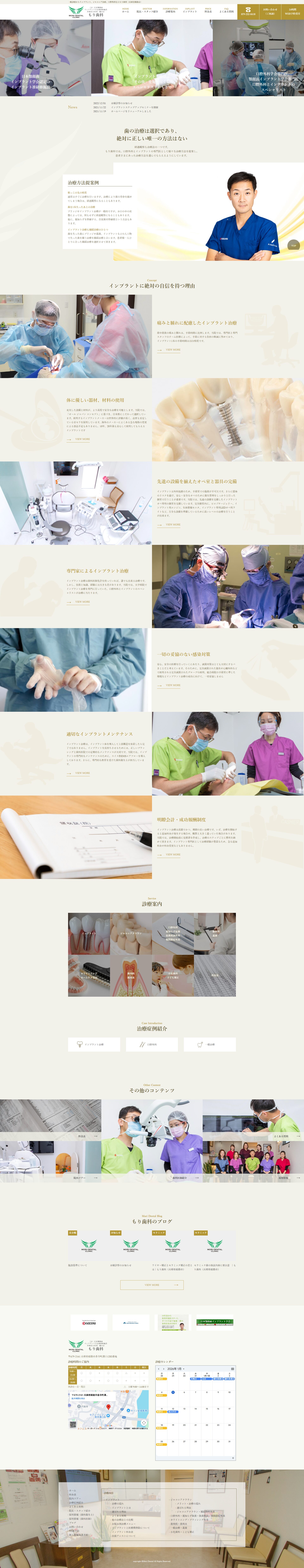 森院長が大切にされている診療理念を丁寧に言語化し、視覚的にも院内の温度感が伝わる撮影カットを各所に配置することで、既存のテンプレートサイトでは到達できない「独自の世界観」を構築しています。