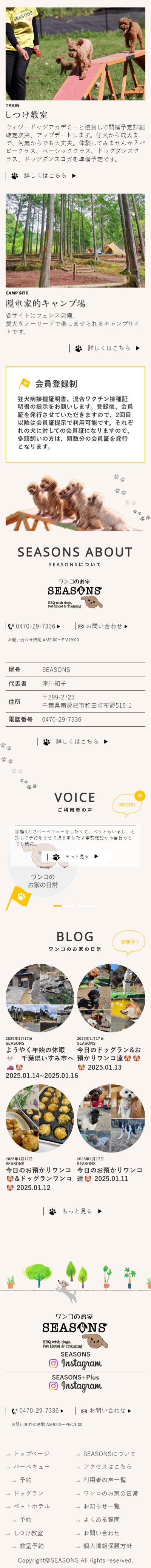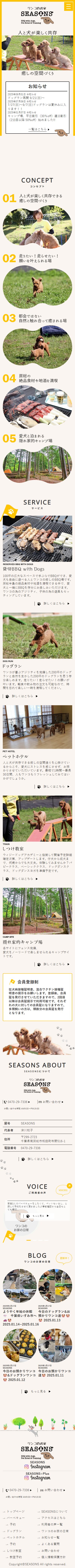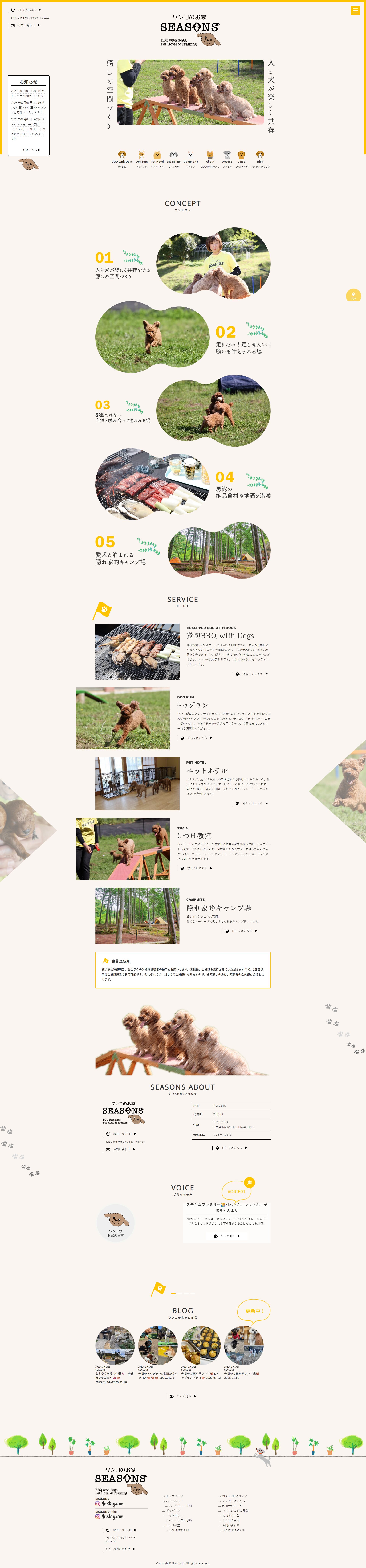千葉県にて、緑豊かな自然に囲まれながら「愛犬と一緒に楽しむ理想のひととき」を提供する総合ペット施設を運営されているSEASONS様です。